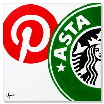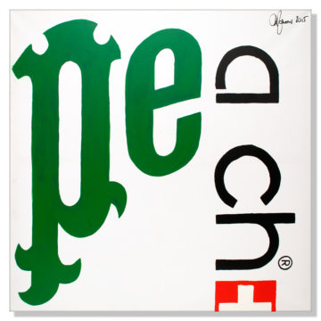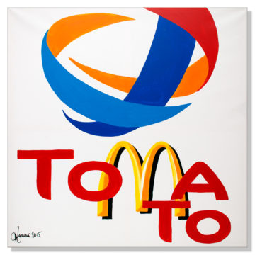 Techno-Food Projects @ Rustioni & Partners Real Estate Advisor. In the project Techno Food food is a technological food: in a series of paintings with a strong pop aesthetic, the logo of important majors are broken up in order to create names of fruits or of other kind of food. It invites to reflect not only about food but on the whole industrial process: what we percieve as natural is indeed completely artificial.