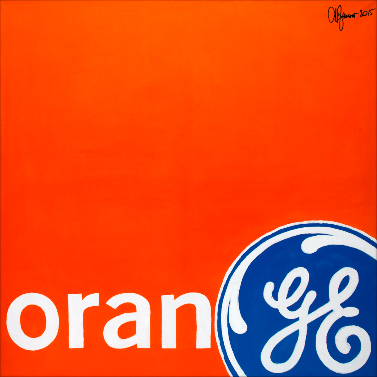 Techno Food that takes its roots from EXPO Milano 2015 and its theme “Feeding the planet, Energy for life”. It is a series of Pop Art-inspired canvases, where logos of major corporations are broken up and put together in order to produce the name of a fruit or other foods. For instance, Campari and Nike generate the word cake. What is the underlying idea? Food becomes technological through logo deconstruction. Technological food also becomes food for thought: We should reconsider both what we eat and our apparent freedom of choice. Not all of these companies deal with food, but they inevitably drive our habits and choices.